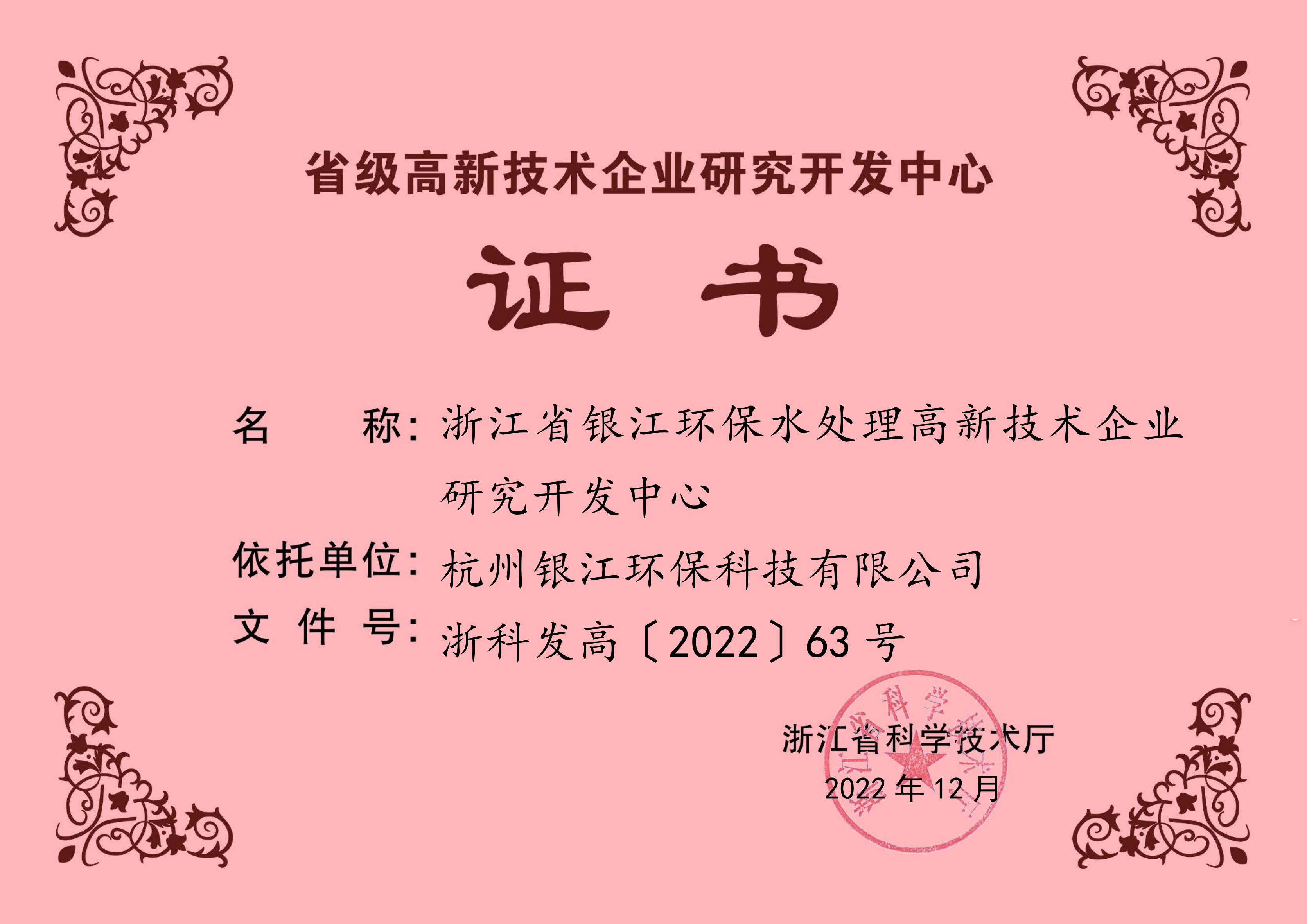 省級高新技術(shù)企業(yè)研究開發(fā)中心證書