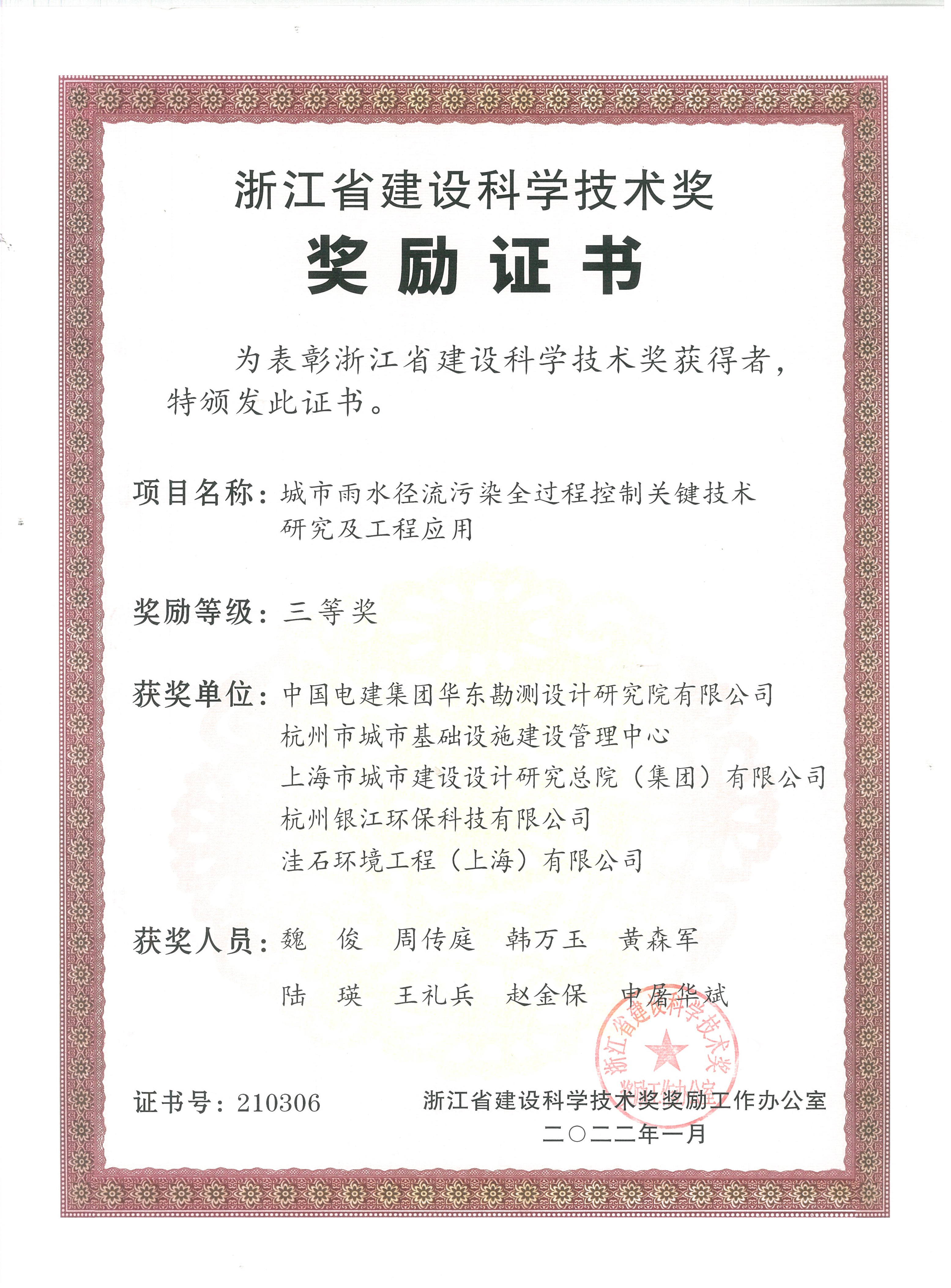 浙江省建設(shè)科學技術(shù)獎三等獎