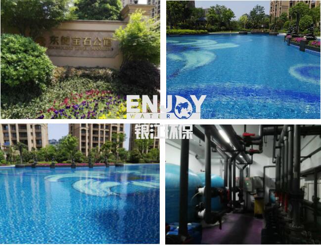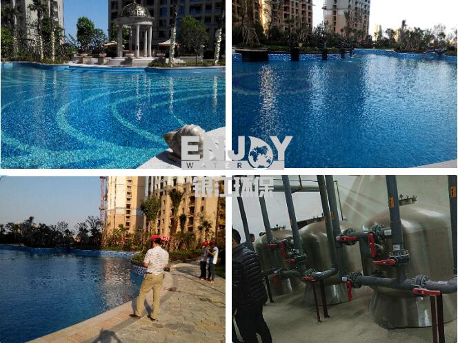 我公司承接該項目的室外景觀泳池水處理工程,泳池總水量約為460m3,循環(huán)時間約為6小時。主要采用循環(huán)泵站、水凈化站、消毒系統(tǒng)、水質監(jiān)測系統(tǒng)。
