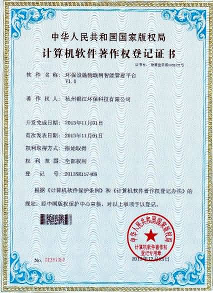 “基于阿里云技術(shù)的環(huán)保設施物聯(lián)網(wǎng)管理平臺”有關(guān)軟件著作權(quán)