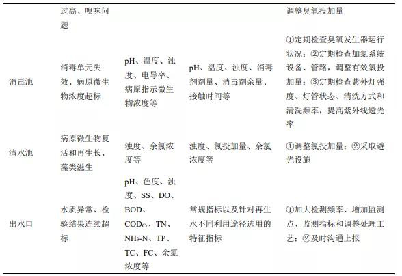 表1 再生水廠(chǎng)水質(zhì)管理措施示例