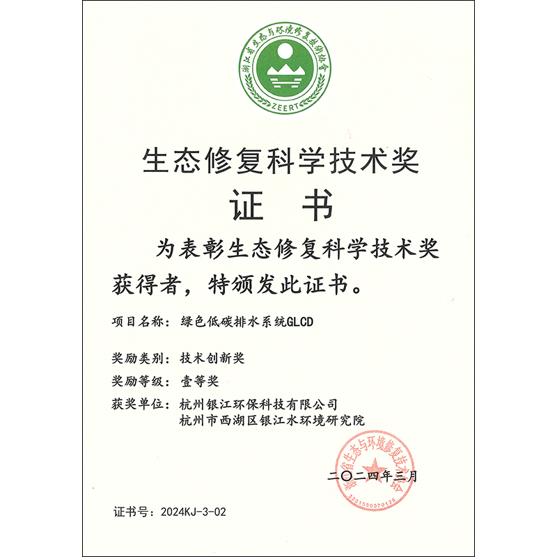 銀江環(huán)保綠色低碳排水系統(tǒng)獲生態(tài)修復(fù)科學(xué)技術(shù)一等獎