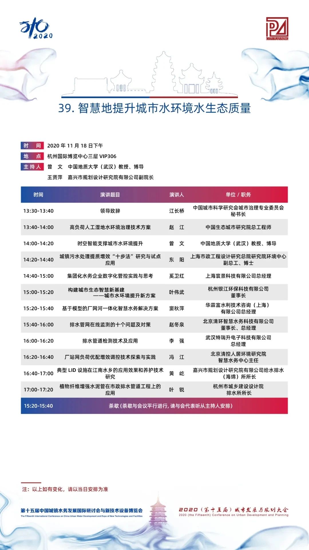 銀江環(huán)董事長(zhǎng)葉偉武應(yīng)邀參加第十五屆中國(guó)城鎮(zhèn)水務(wù)發(fā)展國(guó)際研討會(huì)與新技術(shù)設(shè)備博覽會(huì)。本次大會(huì)是水行業(yè)的重要國(guó)際盛會(huì),旨在交流和探討城鎮(zhèn)供排水、節(jié)水及污水處理方面的先進(jìn)理念、技術(shù)與管理經(jīng)驗(yàn),提高我國(guó)城鎮(zhèn)水務(wù)行業(yè)的技術(shù)和管理水平,推動(dòng)城鎮(zhèn)水務(wù)行業(yè)持續(xù)健康發(fā)展。本次盛會(huì)將邀請(qǐng)400多位權(quán)威演講專家,舉辦2場(chǎng)全體大會(huì),39場(chǎng)專題研討論壇!
