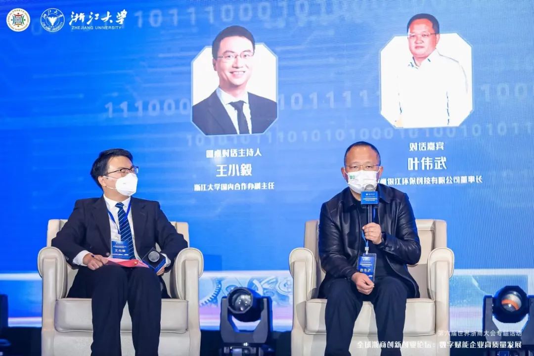 2022年12月23日上午,由浙江大學主辦的第六屆世界浙商大會專題活動——“全球浙商創(chuàng)新創(chuàng)業(yè)論壇:數(shù)字賦能企業(yè)高質(zhì)量發(fā)展”在黃龍飯店舉辦。銀江環(huán)保葉偉武董事長作為圓桌對話嘉賓參加了該會議。