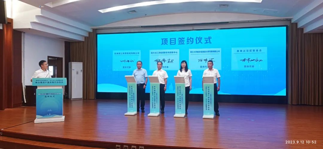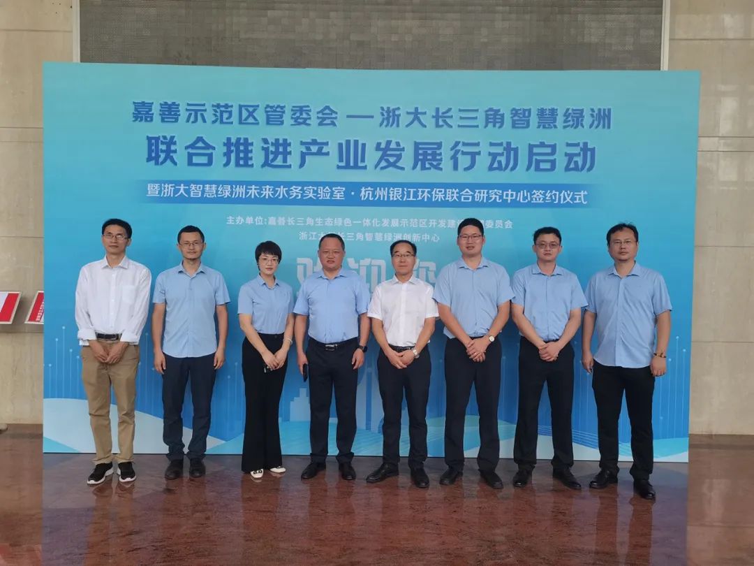 2023年9月12日上午,嘉善示范區(qū)管委會-浙大長三角智慧綠洲聯(lián)合推進產(chǎn)業(yè)發(fā)展行動啟動大會在嘉善縣舉行,啟動大會也開展了杭州銀江環(huán)保與浙江大學長三角智慧綠洲創(chuàng)新中心未來水務實驗室成立聯(lián)合研究中心的簽約儀式。