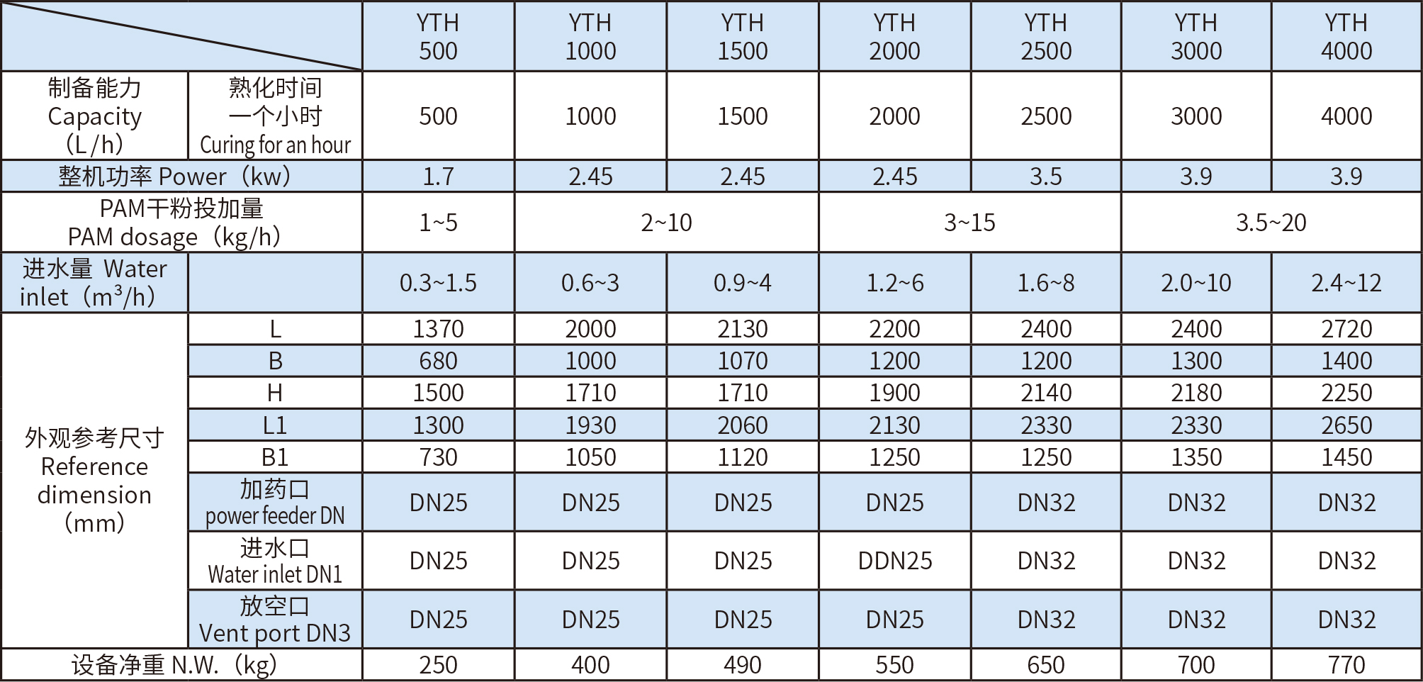 集配料 、溶解 、投加于一體,全自動(dòng)運(yùn)行,干投機(jī)和加熱裝 置的巧妙設(shè)計(jì)可減少結(jié)塊現(xiàn)象;